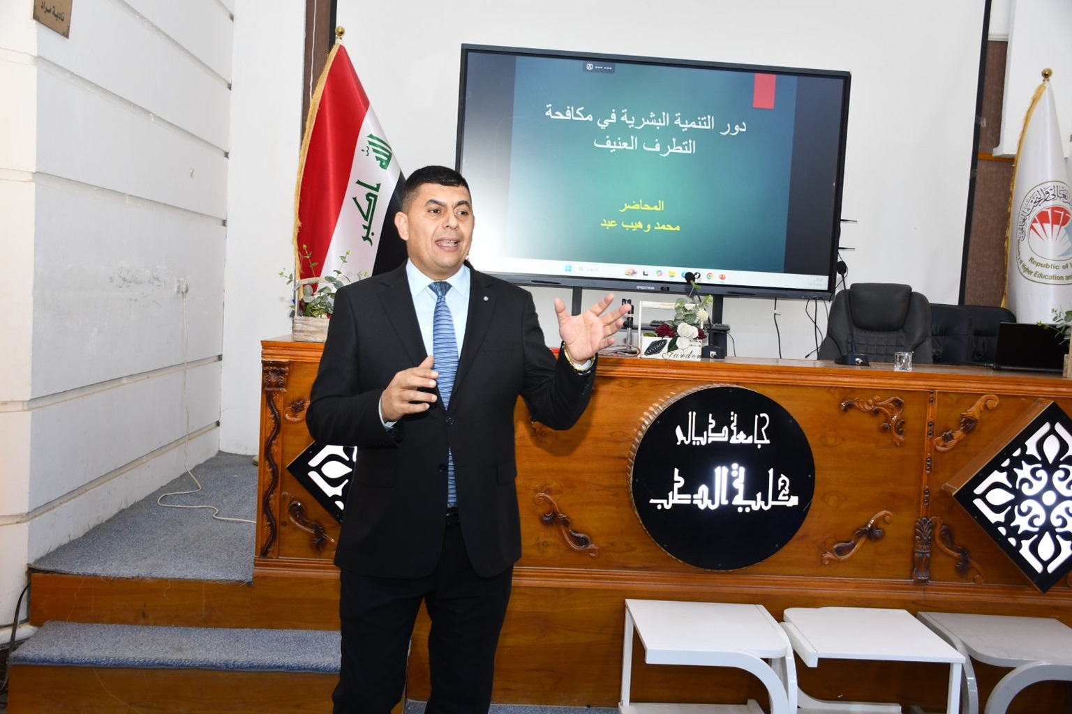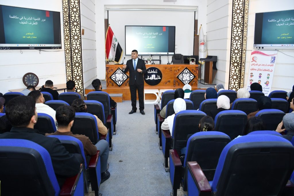 وحاضر في الندوة معاون رئيس فيزياويين محمد وهيب عبد، حيث تناول مفهوم التطرف العنيف وأبرز أسبابه النفسية والاجتماعية، موضحًا أن التنمية البشرية تمثل أداة أساسية في تحصين الفرد فكريًا وسلوكيًا من خلال تنمية مهارات التفكير النقدي، وتعزيز قيم التسامح، وبناء الوعي الذاتي، والقدرة على إدارة الانفعالات واتخاذ القرار بعيدًا عن التأثيرات السلبية.