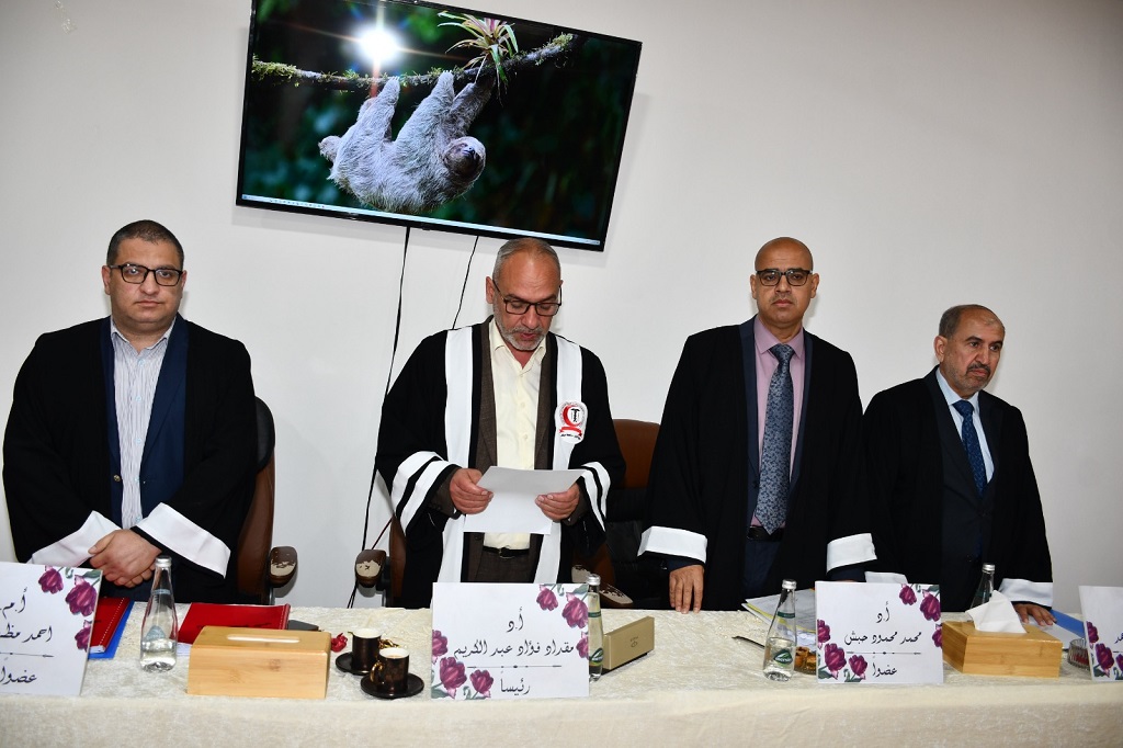 وتألفت لجنة المناقشة من نخبة من أساتذة الكلية: