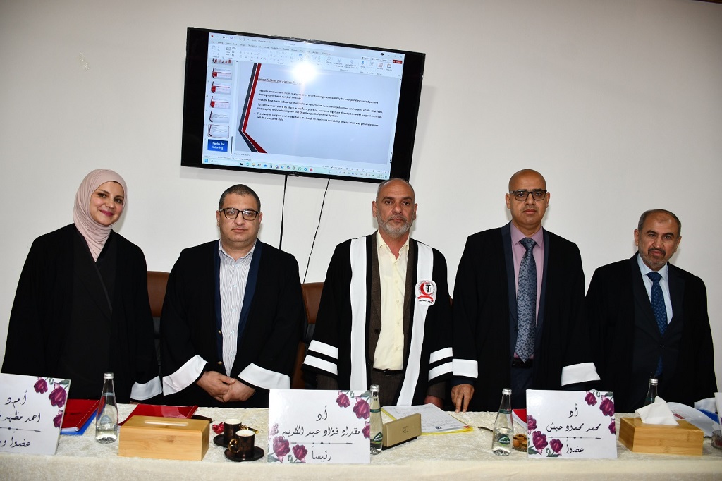 وقد أشادت لجنة المناقشة بجهود الباحثة وما قدمته من نتائج علمية قيمة، حيث اختتمت الجلسة بمنحها شهادة الماجستير في الجراحة العامة بتقدير (جيد جدًا)، في إنجاز علمي يعكس مستوى التميز الأكاديمي والبحثي الذي تتميز به كلية الطب في جامعة ديالى، وحرصها الدائم على مواكبة التطورات الحديثة في المجال الطبي وخدمة المجتمع.